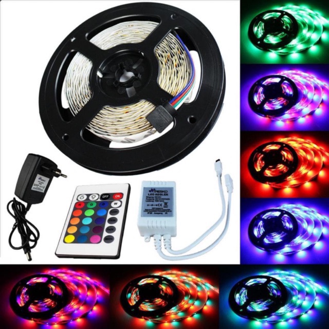 LAMPU LED STRIP 3528 RGB WARNA WARNI IP44 5M AC 220V Sumber : shopee.co.id